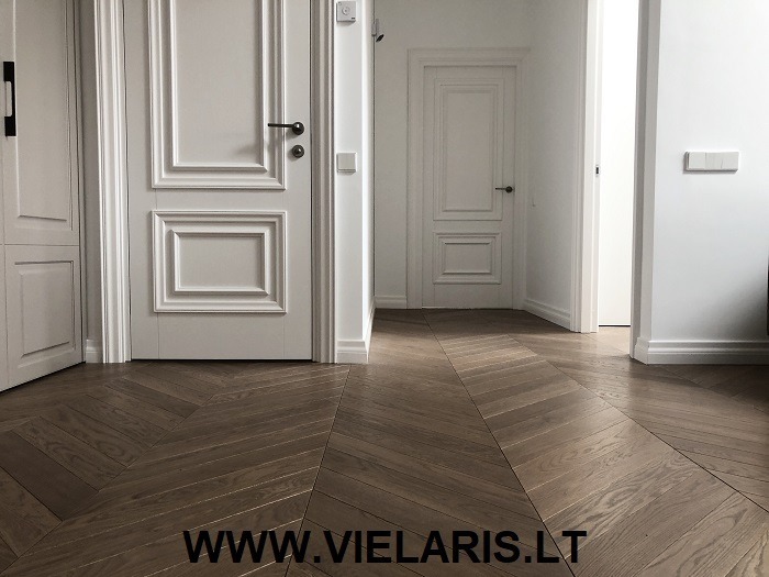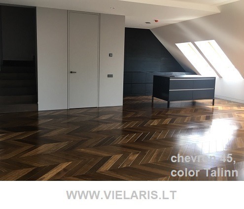 Gaminame virš 15 spalvų iš ąžuolo ir 2 spalvos iš riešuto. Standartinė konstrukcija 15 mm storio ( 4 mm kietmedis + 11 fanera).